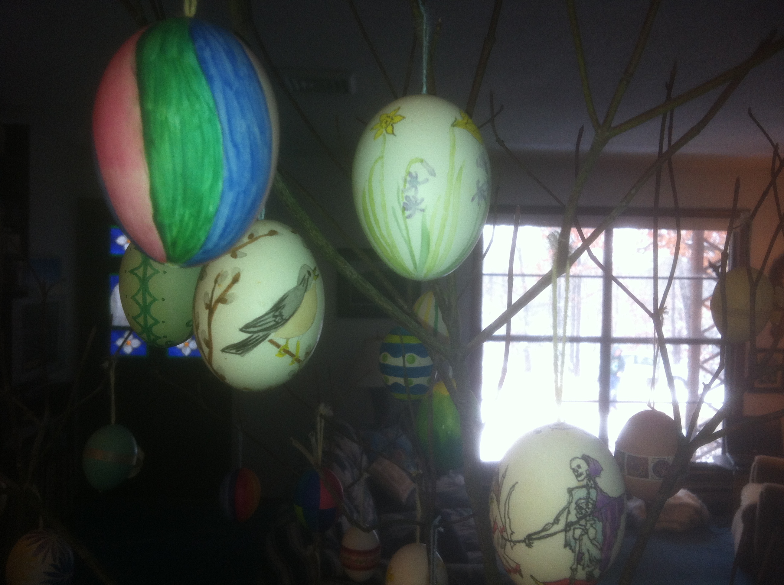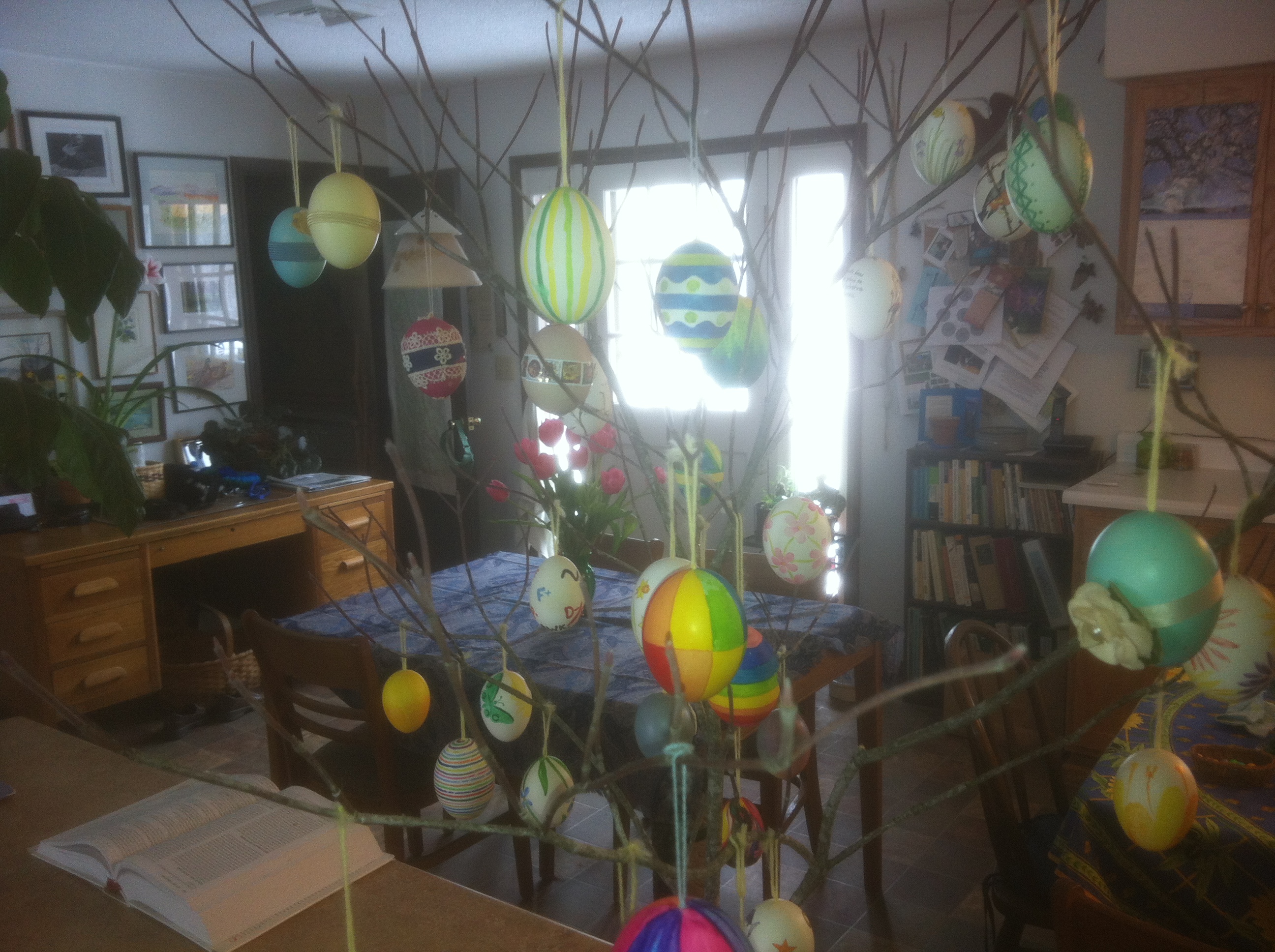 Lynda served a wonderful leg of lamb, we kept wonderful company, and we saw some beautiful hand-painted eggs and lovely flowers.