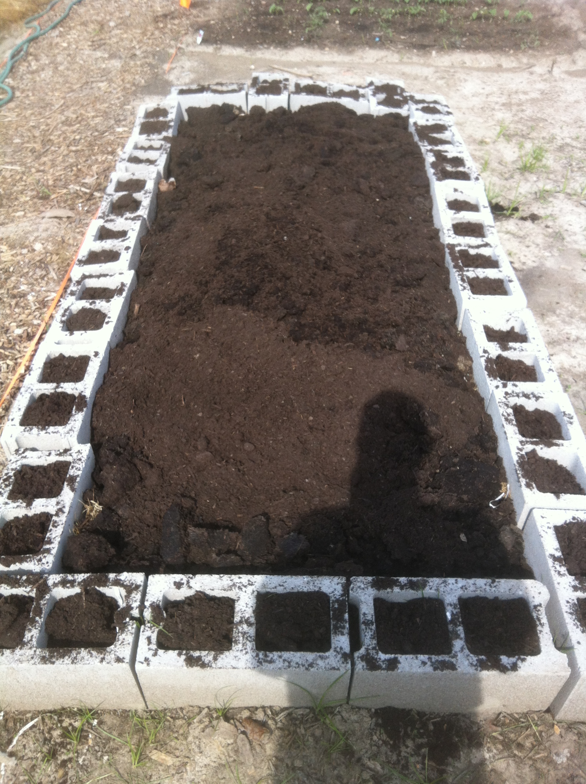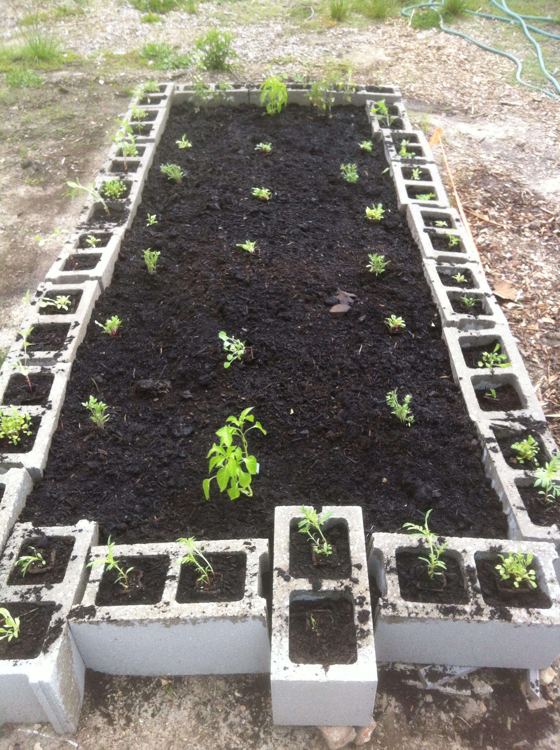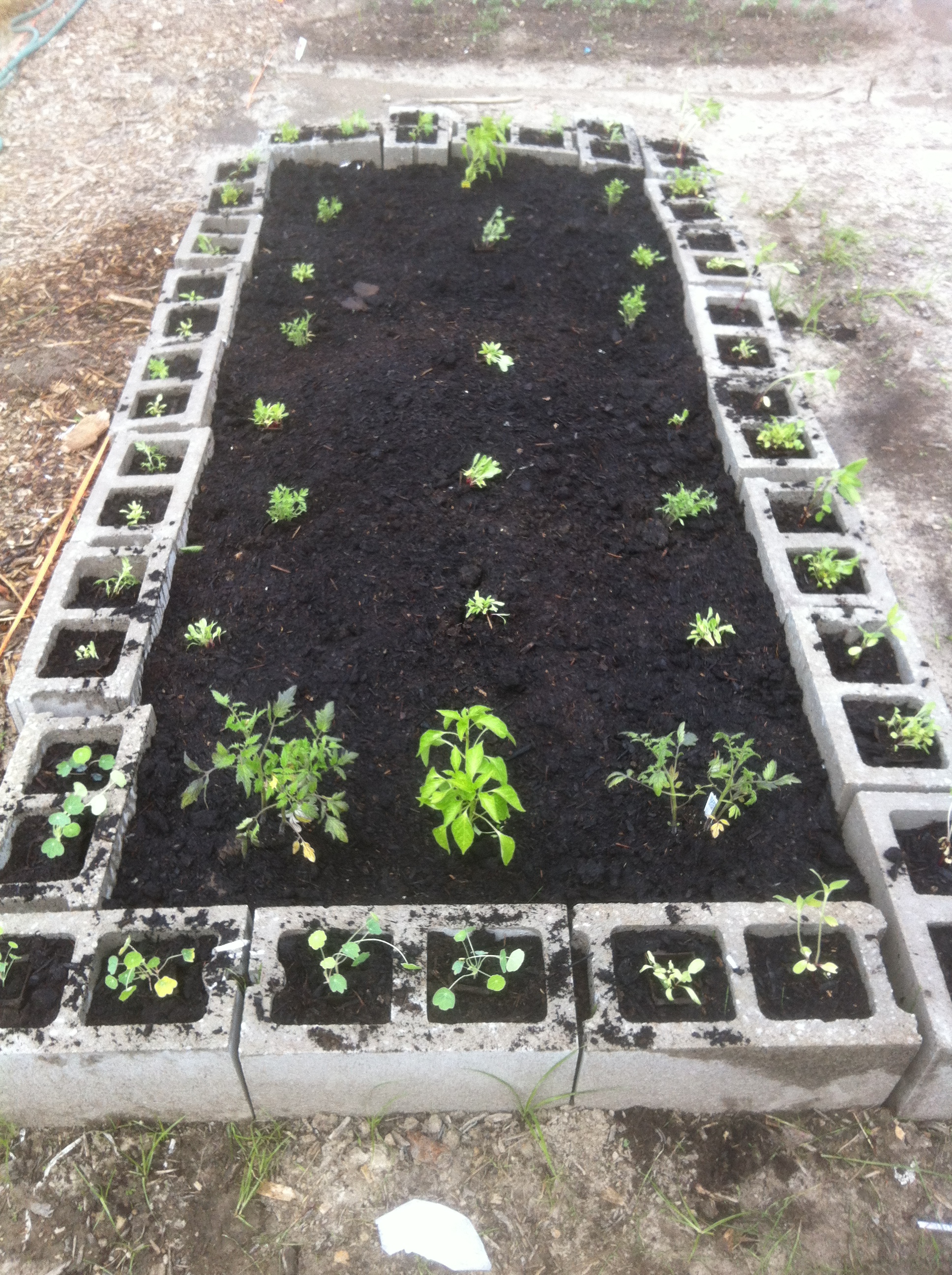 Tom has grown a lot of plants from seed. To be often, they were ready to be planted. I did cheat a little, just to make sure the plants didn’t die or get sick because they needed more room to grown in. I got a few bags of Miracle Grow Organic Soil to top the plot off. Next year, I will start sooner with the plot. At the very least, I will have some compost going earlier in the year for any topping off that needs to be done.