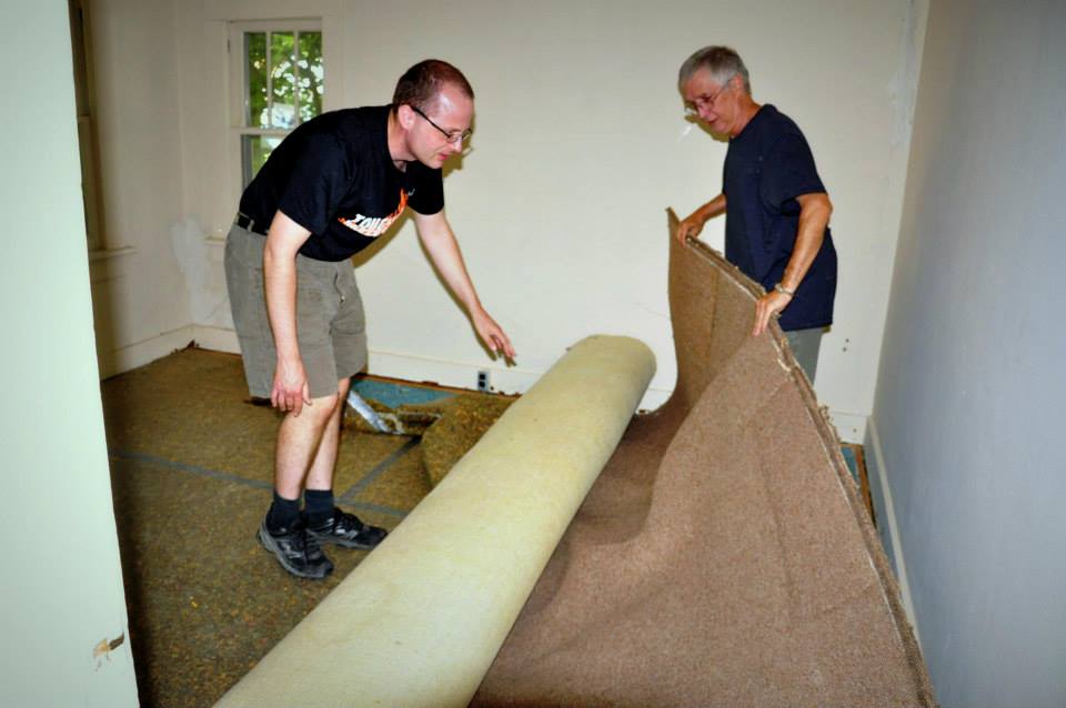 It helps when you know what you are doing…Steve has refinished hardwood floors in the past and is leading this project at the UUFR. These pictures are from our second Work Day at the Fellowship. Thanks for your leadership on this issue, Steve.