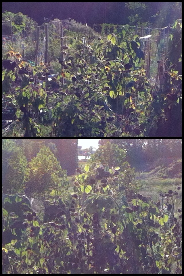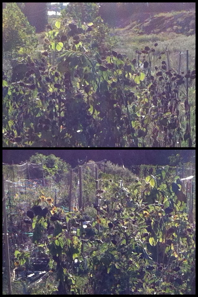 Did some watering and weed whacking at the UUFR Garden Plots at the Rolla Community Garden and discovered our sunflowers, although no longer being visited by bees, are feeding many birds.